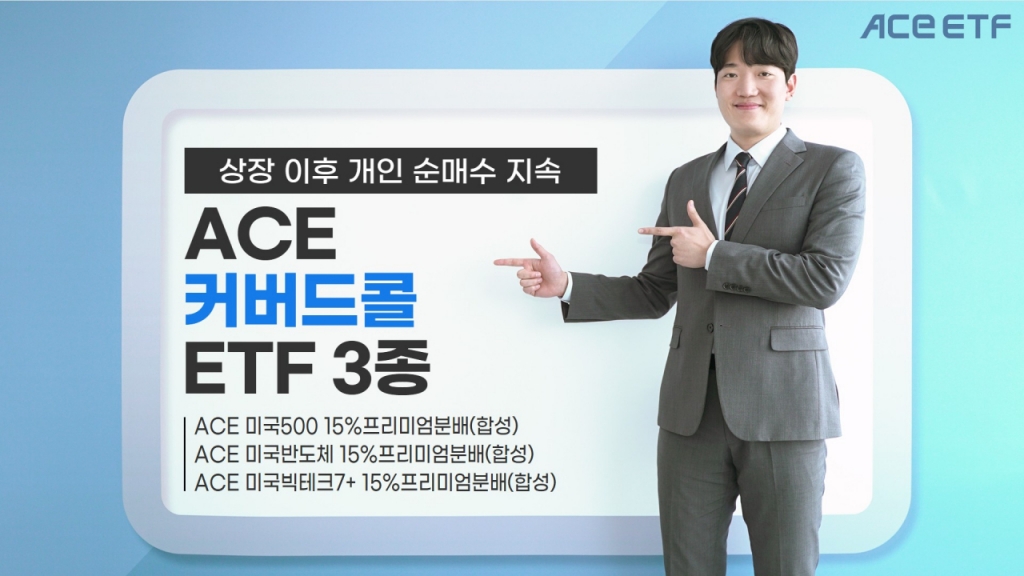 3종의 커버드콜은 △ACE 미국500 15%프리미엄분배(합성)(10,530원 ▲75 +0.72%) △ACE 미국반도체15%프리미엄분배(합성)(13,770원 ▲235 +1.74%) △ACE 미국빅테크7+ 15%프리미엄분배(합성)(11,610원 ▲95 +0.83%)으로, 연간 최대 15%의 분배금을 지급하는 것을 목표로 하는 것이 특징이다. 개인 투자자들은 지난달 23일 3종의 상품이 상장한 뒤 지난 7일까지 9거래일 연속 순매수했다.