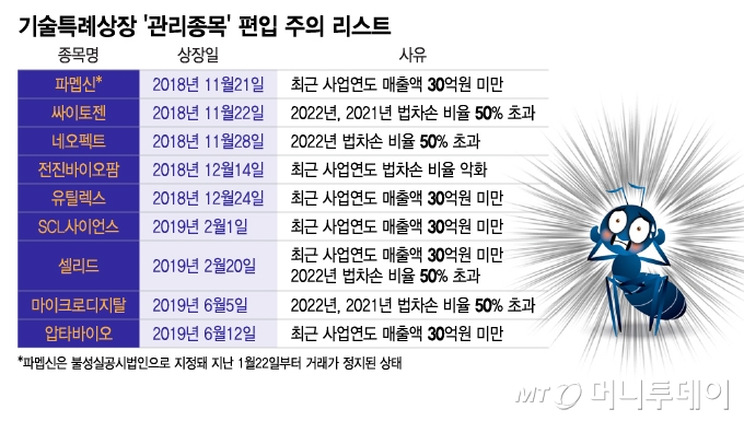 기술특례상장으로 증시에 입성한 종목 중 상당수가 관리종목에 지정될 위기에 처한 것으로 나타났다. 관리종목에 지정될 경우 상장폐지로 이어질 가능성이 높은 만큼 전문가들은 감사보고서와 재무제표를 꼼꼼히 살펴볼 것을 조언했다.