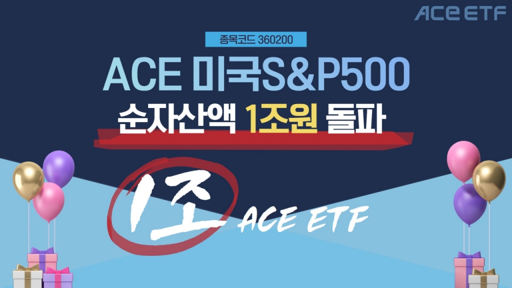 거래소에 따르면 ACE 미국S&P500의 순자산액은 지난 20일 기준 1조25억원으로 집계됐다. 해당 ETF의 순자산액이 1조원을 돌파한 건 처음이다. ACE ETF 중에서는 지난 3월 순자산액이 1조원을 돌파한 ACE 미국30년국채액티브(H) ETF에 이어 두번째다.