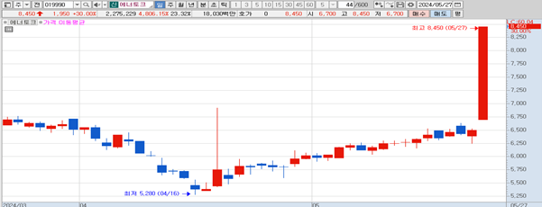 에너토크(10,310원 ▼280 -2.64%)가 장중 급등을 보이고 있다.