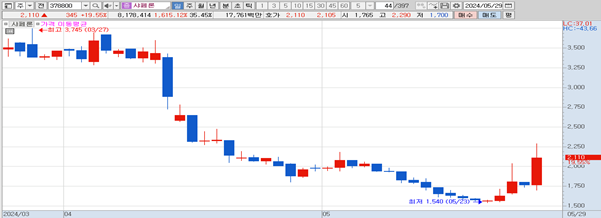 샤페론(1,876원 ▼22 -1.16%)이 장중 급등을 보이고 있다.