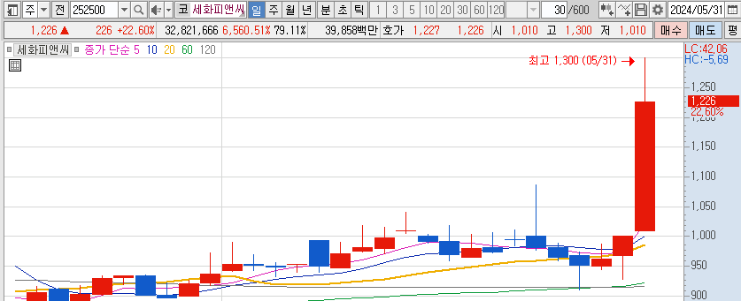 세화피앤씨 주가가 아랍에미리트로 수출하는 화장품 관세가 단계적으로 철폐된다는 소식에 급등하고 있다.