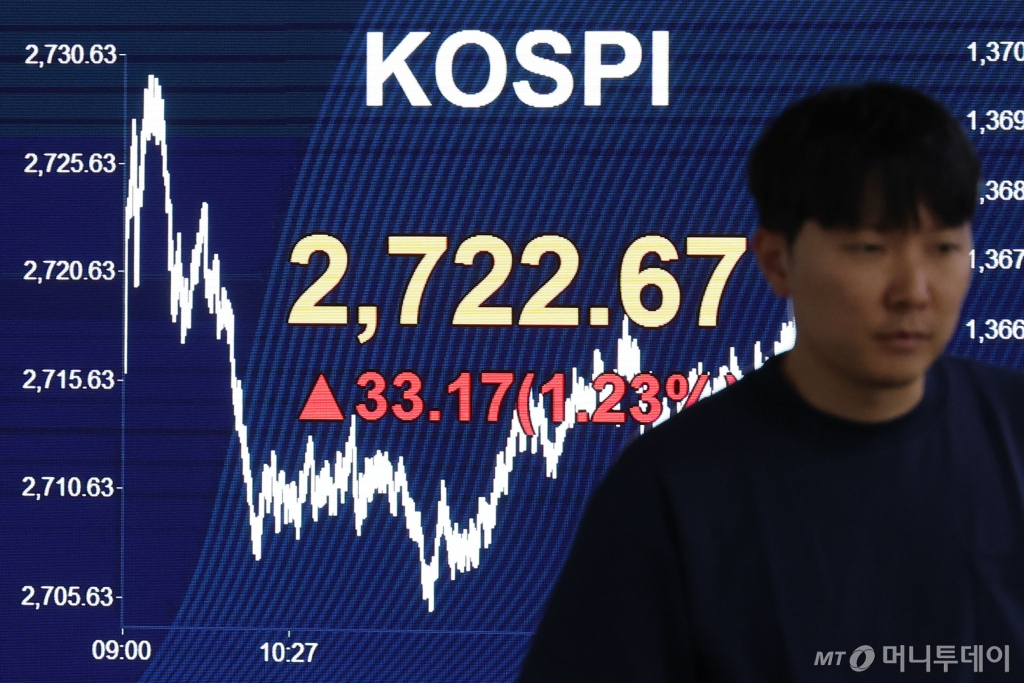 코스피지수는 전 거래일보다 33.17포인트(1.23%) 오른 2722.67에 마감했다. 투자자별로 개인이 4683억원 순매도한 반면 외국인과 기관이 각각 2865억원, 1583억원 순매수했다