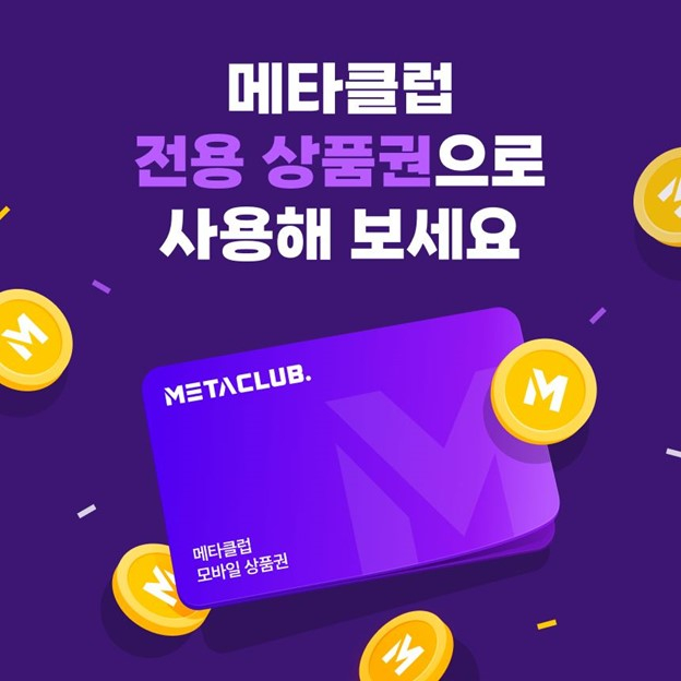 사용자들은 신규 출시된 메타클럽 모바일 상품권을 통해 메타클럽 내 메타머니를 충전하고, 이를 다양한 제휴 상품권으로 전환할 수 있다. 현재 G마켓에서 단독 판매 및 할인 프로모션이 진행되고 있으며, 권종은 1000원 단위부터 5만원까지 폭넓게 운영한다. 또 메타클럽은 추후 주요 커머스 브랜드를 통해 외부 판매 채널도 확장해 나갈 방침이다.