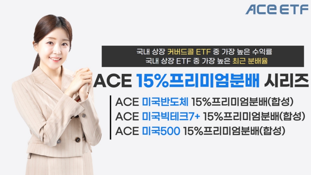 한국투자신탁운용은 ACE 15%프리미엄분배 상장지수펀드(ETF) 2종이 국내 상장 커버드콜 ETF 중 최근 1개월 수익률 1위와 2위를 차지했다고 17일 밝혔다.