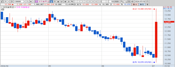 대원전선(13,090원 ▲3,020 +29.99%) 일신석재(1,673원 ▲29 +1.76%) 동양철관(1,969원 ▼66 -3.24%) 블루엠텍(3,352원 ▼8 -0.24%) 한국석유(15,880원 ▼160 -1%)