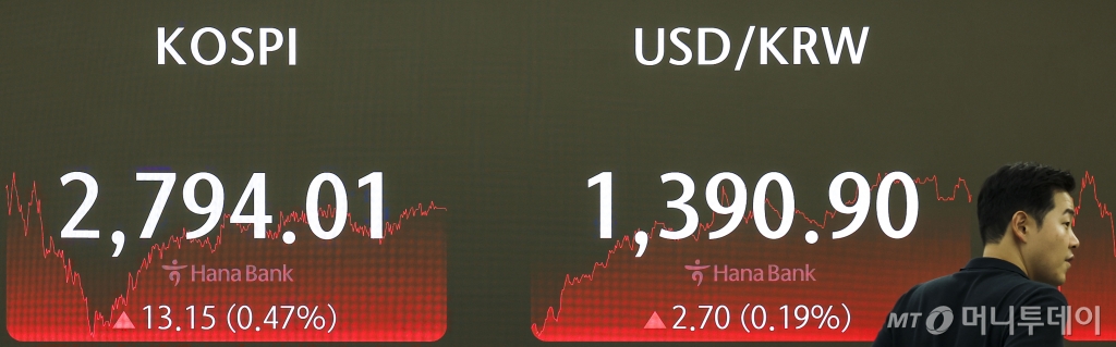 코스피지수는 전일대비 13.15포인트(0.47%) 오른 2794.01에 마감했다. 투자자별로 개인이 2600억원 순매도한 반면 외국인과 기관이 각각 885억원, 1794억원 순매수했다.