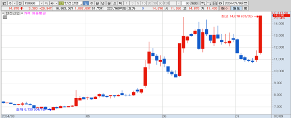 한전산업(20,500원 ▲150 +0.74%)이 급등하여 20%대 이상 상승했다.