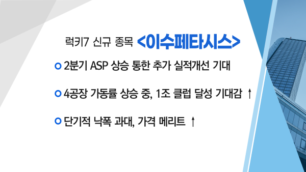 ▶ 럭키7 신규 종목 [이수페타시스(150,600원 ▼4,900 -3.15%)]
