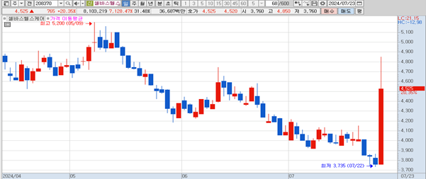 셀바스헬스케어(4,460원 ▼50 -1.11%)가 급등하여 20%대 이상까지 상승했다.