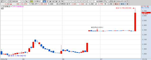 상장폐지를 위한 추가적인 공개매수 가격이 올라간다는 기대감이 반영된 것으로 보인다. 신성통상은 상장폐지를 위해 지난 21일부터 이날까지 진행한 공개매수 작업이 실패로 끝났다. 앞서 신성통상은 지난 21일 1주당 2300원에 잔여 주식 전체를 공개매수하겠다고 밝힌 바 있다.