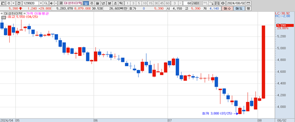 대성하이텍(11,340원 ▲90 +0.8%)이 장중 급등을 보이고 있다.