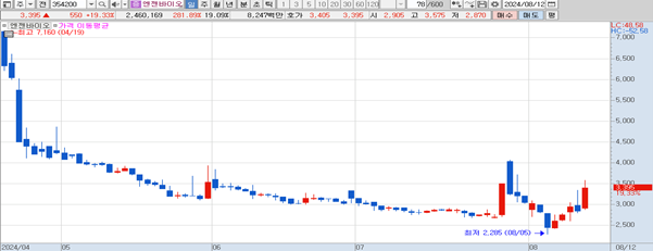 엔젠바이오가 2020년 코스닥 시장 상장 뒤 적자에서 벗어나지 못하고 있다. 오히려 지난해 매출액이 전년 대비 감소하고 적자 규모가 커지는 등 역성장이 나타나 투자자의 불안을 키웠다. 특히 계속 사업손실에 따른 관리종목 지정 유예 기간이 끝나 재무건전성 및 수익성 개선이 시급하다.
