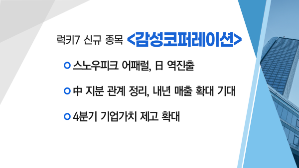 ▶ 럭키7 신규 종목 [감성코퍼레이션(6,800원 ▲420 +6.58%)]