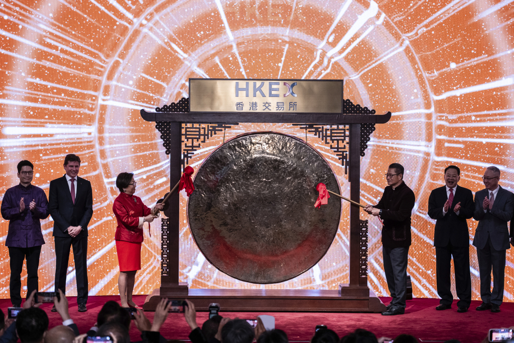 ![[홍콩=AP/뉴시스] 폴 찬(오른쪽 세 번째) 홍콩 재무장관과 로라 차(왼쪽 세 번째) 홍콩증권거래소 회장이 14일(현지시각) 홍콩거래소(HKEX)에서 춘절 이후 첫 개장을 맞아 징을 치고 있다. 춘절 연휴를 마치고 개장한 홍콩 증시는 중국 시장에서 자금 유출이 가속한다는 우려로 매도가 선행하면서 속락 출발했다. 2024.02.14. /사진=민경찬](https://thumb.mt.co.kr/cdn-cgi/image/f=avif/21/2024/10/2024100816272882976_1.jpg)