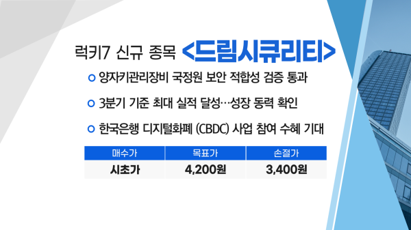 ▶ 럭키7 신규 종목 [드림시큐리티(1,852원 ▲229 +14.11%)]