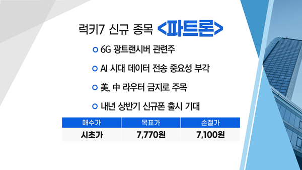 ▶ 럭키7 신규 종목 [파트론(7,820원 ▼270 -3.34%)]