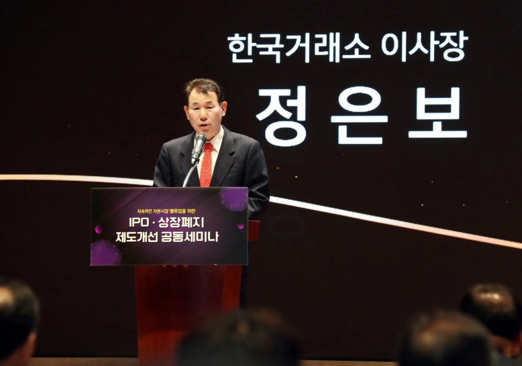 정은보 이사장은 축사에서 "올해 증시가 회복세를 보이고는 있지만 여전히 대외적 여건을 살펴보면 녹록지 않다. 늘 지적돼 왔던 코리아 디스카운트(한국 증시 저평가)가 여전한 상황"이라며 "밸류업 프로그램의 일환으로 상장제도에 대한 개편을 통해 자본시장이 본연의 역할을 확고히 할 수 있도록 하겠다"라고 했다.