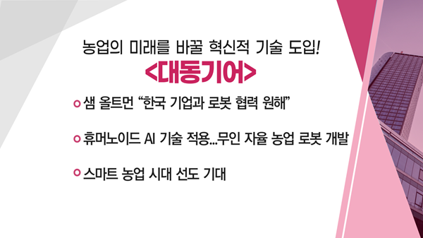 - 휴머노이드 AI 기술 적용… 무인 자율 농업 로봇 개발