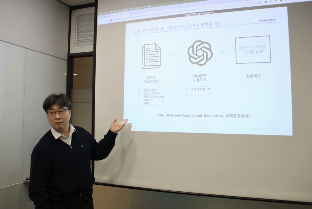 디지털혁신본부 김재관 본부장이 주도하는 이 동아리는 매월 1회 정기적으로 운영된다. ChatGPT(챗GPT) 등 AI(인공지능)기술을 활용한 업무 효율화에 관심 있는 임직원이라면 누구나 참여할 수 있다.