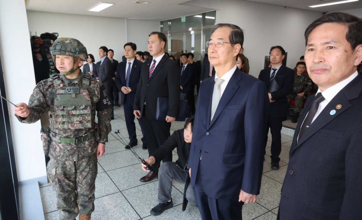 ![[파주=뉴시스] 최진석 기자 = 한덕수 대통령 권한대행 국무총리가 1일 경기도 파주 육군 1사단 도라OP 전망대를 방문해 양진혁 육군 1사단장의 설명을 듣고 있다. (대통령실통신사진기자단) 2025.04.01. myjs@newsis.com /사진=최진석](https://thumb.mt.co.kr/cdn-cgi/image/f=avif/21/2025/04/2025042814190896382_1.jpg)