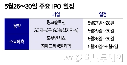 이번주(5월16일~30일) 일반투자자 대상 청약을 진행하는 기업은 링크솔루션과 GC지놈으로 총 2곳이다.