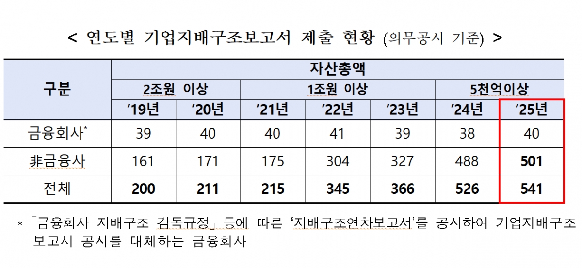 한국거래소는 코스피에 상장된 549개사의 '2025년 기업 지배구조 보고서'를 접수했다고 4일 밝혔다.