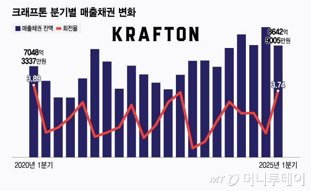 크래프톤(234,500원 ▼10,000 -4.09%)은 게임 대장주다. 주력게임 '배틀그라운드'가 꾸준한 사랑을 받으면서 지난해 연결기준 2조7000억원 넘는 영업수익을 거뒀다. 코스피 상장 4년 만에 매출 2조원을 넘어섰다. 재무적으로 살펴보면, 비결은 '매출채권'이다. 다만 매출채권 회수 기간이 100일을 넘겨 현금유동성에 대한 리스크 관리가 필요한 상황이다.