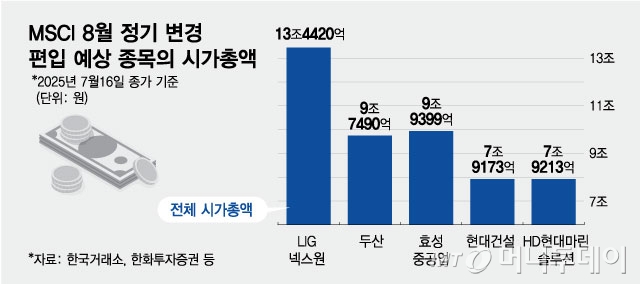 MSCI 8월 정기 변경 편입 예상 종목의 시가총액./그래픽=최헌정 디자인 기자