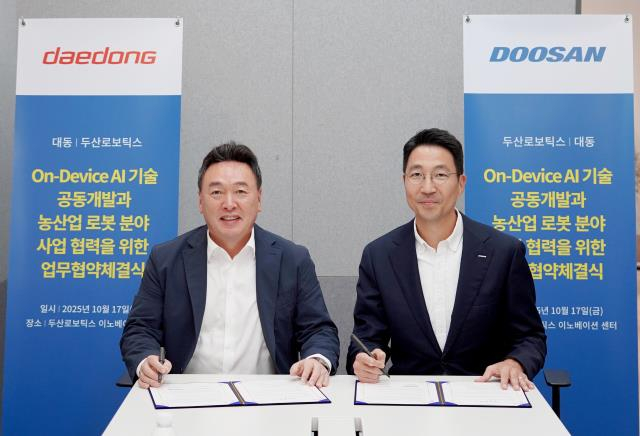 미래농업 기업 대동은 두산로보틱스와 '온디바이스 인공지능(AI) 기술 공동 개발 및 농산업 로봇 분야 사업 협력을 위한 업무협약(MOU)'을 체결했다고 20일 밝혔다.