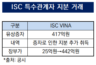 달라진 중요도를 고려해 ISC도 베트남 현지법인에 추가 자금을 지원했다. 그간 공을 들여온 공정 고도화 작업이 연말 마무리될 예정이라는 부분도 투자를 단행한 배경이다. ISC가 베트남 현지법인의 유상증자에 참여하는 방식이 적용됐다. ISC가 투입한 자금 규모는 418억원이다. 연초 25억원이던 장부가도 442억원까지 증가했다.