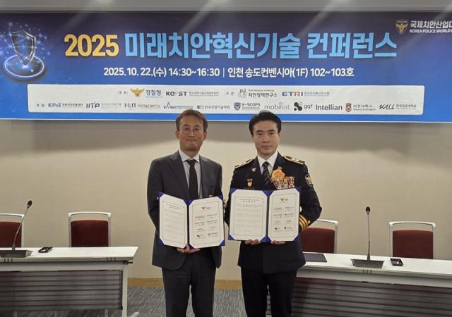 인텔리안테크(130,300원 ▼3,100 -2.32%)는 인천 송도에서 열린 '2025 미래치안혁신기술 컨퍼런스'에서 경찰청과 업무협약을 체결했다고 22일 밝혔다.