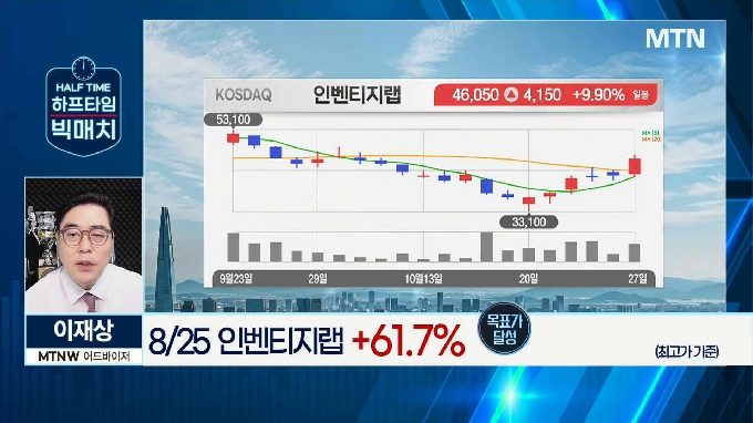 * 8/25 인벤티지랩(61,100원 ▼2,600 -4.08%) 61.7% (최고가 기준) 목표가 달성