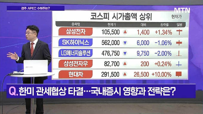 진행 : 예민수 / 앵커 출연 : 박영호 / 빅마스터 경제연구소장 Q. 한미 관세협상 타결…국내증시 영향과 전략은? Q. '부산 담판' 미중 무역전쟁 휴전… 최대 수혜주는? Q. '개미 무덤' 오명 벗나… 2차전지주 투자 포인트는? Q. 2차전지주, 수출 동향과 관련주 전략은? ※ 생방송 '터닝 포인트11'은 매일 오전 10시 53분에 방송되며, 금융시장의 빅 이슈를 한눈에 정리하고, 국내 시장 분석을 통해 시청자의 투자 안목을 높여 드립니다. 이 방송은 머니투데이방송 홈페이지 및 케이블방송에서 라이브로 시청하실 수 있습니다. 독자들의 PICK! 윤미래, 뒤늦게 알려진 사망 소식..."긴 여행 떠나" 동서와 갈등→파혼 2번 아내..."조카는 남편 아이" 의심 충격 추성훈, '파격' 누드 화보 공개…"돈 안 받아, ♥야노 시호도 촬영" "남성 의사가 은밀한 곳 봤잖아" 이혼 선언…산부인과서 난동