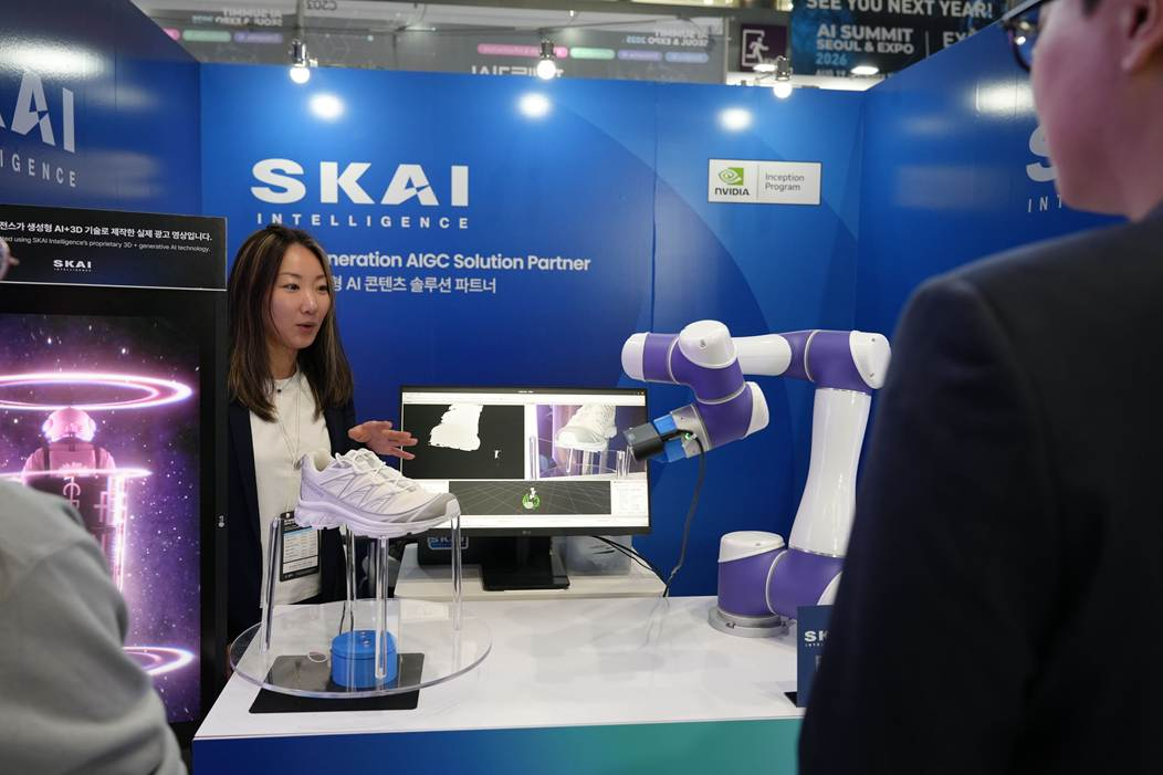 스카이인텔리전스는 전시 부스에서 자체 개발 로봇암 자동 3D 스캐닝 기술과 3D와 생성형 AI를 결합한 차세대 콘텐츠 제작 솔루션을 시연했다. 이번에 선보인 로봇암 자동 스캐닝 기술은 엔비디아 아이작 심(NVIDIA Isaac Sim) 기반으로 트레이닝 된 로봇암을 활용해 실물 제품을 정밀하게 디지털화하고, 이를 즉시 콘텐츠 제작에 활용 가능한 고품질 3D 모델로 변환하는 것이 특징이다.