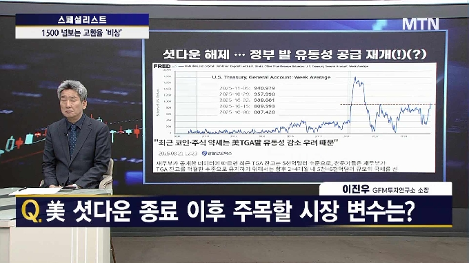 진행 : 예민수 / 앵커 출연 : 이진우 소장 / GFM투자연구소 Q. 美 셧다운 종료 이후 주목할 시장 변수는? Q. 美증시, 단기 조정 이후 반등세… 주가 위치 해석은? Q. 원화 가치 추락 어디까지? ※ 생방송 '터닝 포인트11'은 매일 오전 10시 53분에 방송되며, 금융시장의 빅 이슈를 한눈에 정리하고, 국내 시장 분석을 통해 시청자의 투자 안목을 높여 드립니다. 이 방송은 머니투데이방송 홈페이지 및 케이블방송에서 라이브로 시청하실 수 있습니다. 독자들의 PICK! 동서와 갈등→파혼 2번 아내..."조카는 남편 아이" 의심 충격 "남성 의사가 은밀한 곳 봤잖아" 이혼 선언…산부인과서 난동 '고려대 얼짱' 걸그룹 멤버, 돌연 신내림..."10kg 빠지고 가족 죽는 꿈" "조갑경, 방송서 '아들 불륜' 나 몰라라…벌 받길" 전 며느리 분노