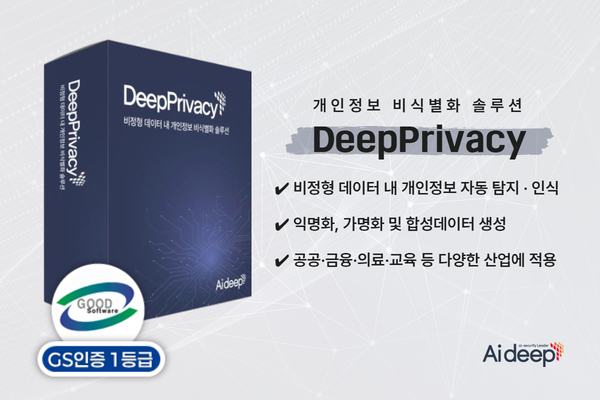 구자동 에이아이딥 대표는 "딥프라이버시의 GS 1등급 획득은 비정형 데이터 개인정보 비식별화 분야에서 당사의 기술력과 제품 완성도를 공인받은 것"이라며 "개인정보보호법, 강화되는 규제 환경 속에서 공공기관과 기업 고객이 안심하고 도입할 수 있는 표준 비식별화 플랫폼으로 자리매김하겠다"고 말했다.