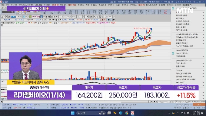 * 11/14 매수일 리가켐바이오(205,500원 ▲13,500 +7.03%) 11.5% (최고가기준)