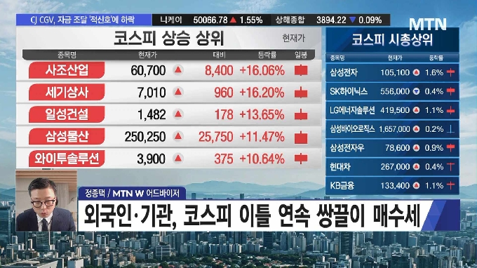 - 외국인· 기관, 코스피 이틀 연속 쌍끌이 매수세