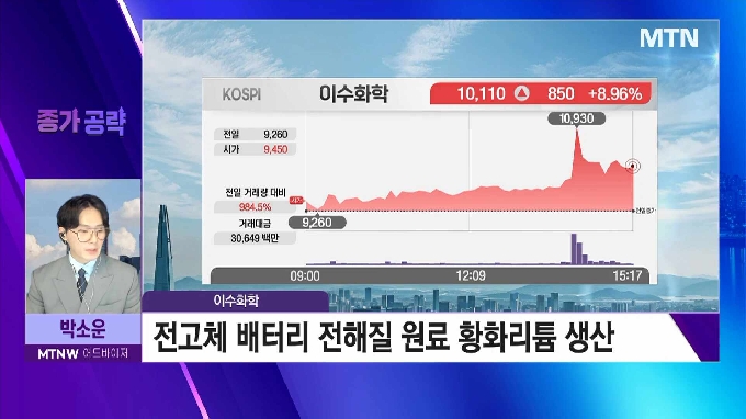 ▶ 오늘의 종가 공략주 BEST <이수화학>