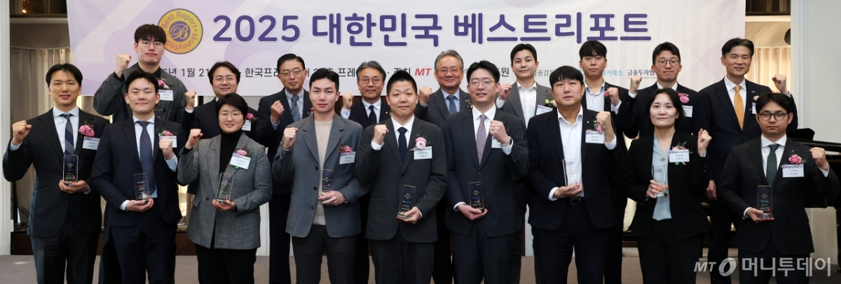 21일 서울 중구 프레스센터에서 열린 '2025 대한민국 베스트리포트' 시상식에서 시상자 및 수상자들이 기념촬영을 하고 있다.