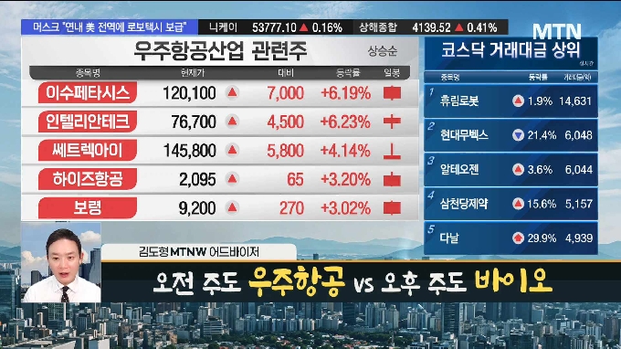 ▶ 오전 주도 우주항공 VS 오후 주도 바이오