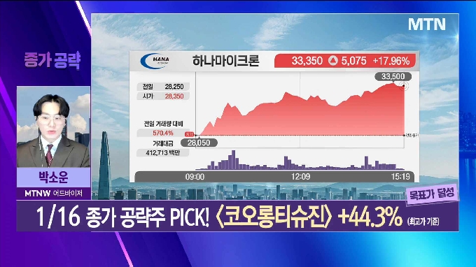 오늘의 종가 공략주 BEST로 하나마이크론이 32.7% 상승하여 목표가를 달성했으며, 코오롱티슈진도 44.3% 상승하여 목표가를 달성했습니다. 방송은 매일 14시 30분부터 15시 41분까지 LIVE로 시청 가능하며, 유튜브와 케이블TV 등 다양한 채널에서 다시보기가 가능합니다.