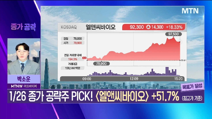 * 1/26 종가 공략주 PICK! 엘앤씨바이오 51.7% (최고가 기준)