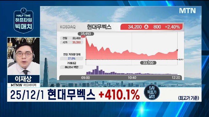 * 25/12/1 현대무벡스(30,250원 ▲150 +0.5%) 410.1% (최고가 기준) 5차 목표가 달성