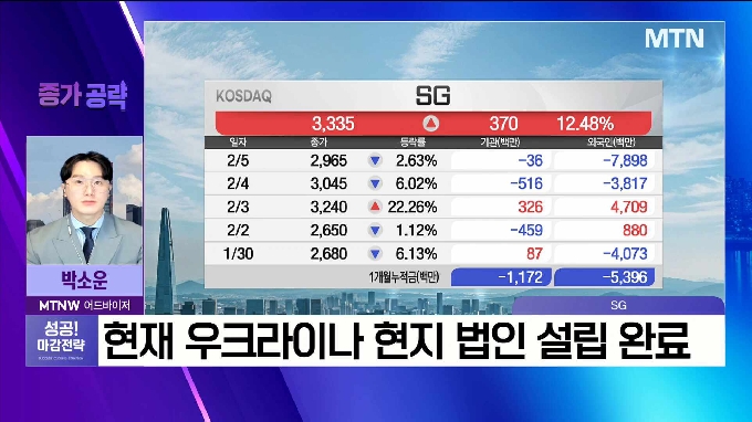 오늘의 종가 공략주로 SG가 소개되었으며, 친환경 도로 인프라 및 아스콘 전문기업으로 우크라이나 현지 법인 설립을 완료하여 우크라이나 재건 사업 진출이 예상됩니다. 목표가는 3,800원, 손절가는 2,500원으로 설정되었습니다.