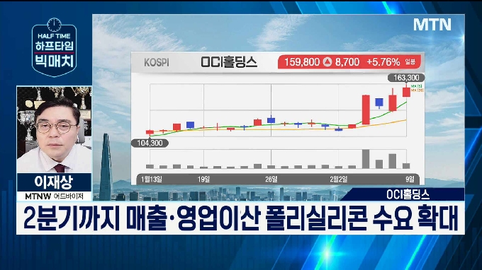▶ 오늘의 하프타임 공략주 'OCI홀딩스(196,300원 ▼3,700 -1.85%)'