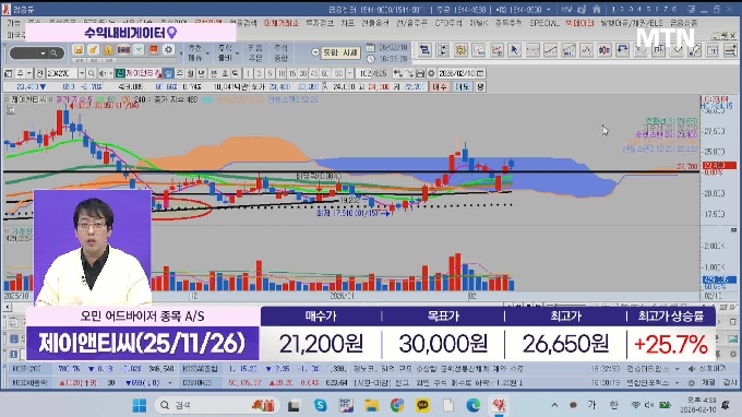 * 25/11/26 매수일 제이앤티씨(19,240원 ▲10 +0.05%) 25.7% (최고가기준)