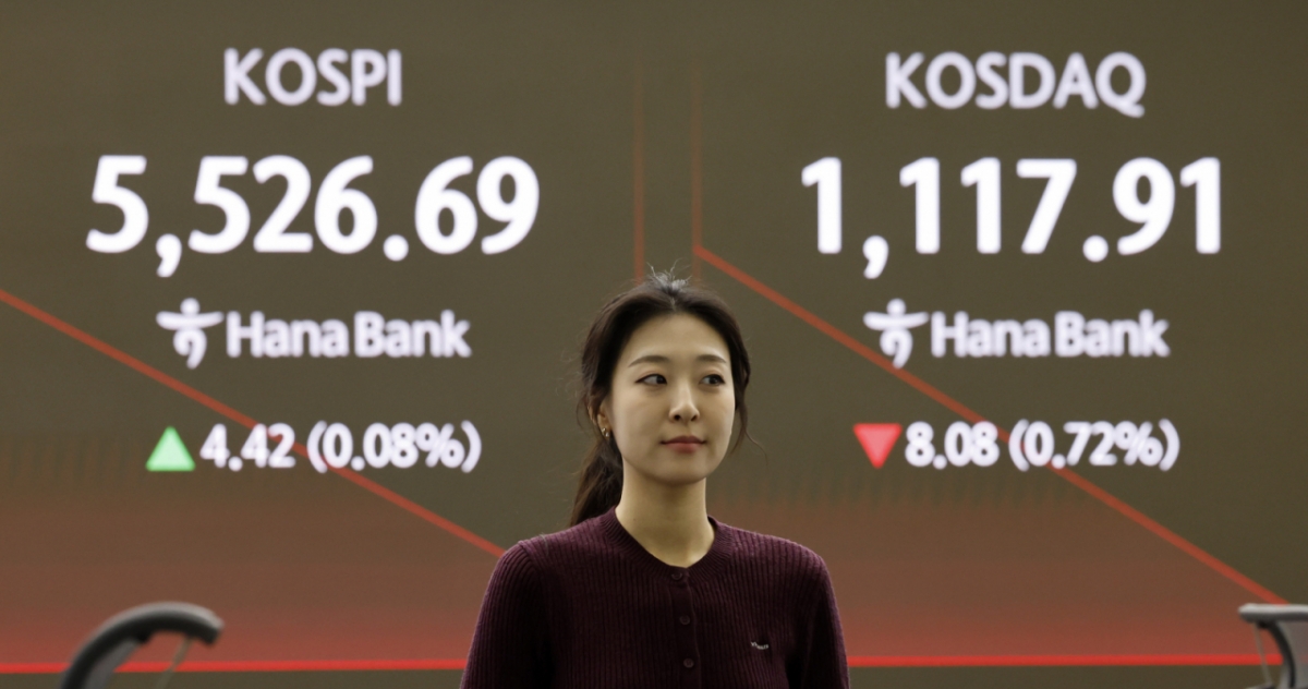 ![[서울=뉴시스] 김혜진 기자 = 코스피가 전 거래일(5522.27)보다 8.56포인트(0.16%) 내린 5513.71에 개장한 3일 오전 서울 중구 하나은행 딜링룸 전광판에 지수가 표시 되고 있다. 코스닥 지수는 전 거래일(1125.99)보다 12.46포인트(1.11%) 내린 1113.53에 거래를 시작했다. 원·달러 환율은 전 거래일 주간거래 종가(1440.2원)보다 1.3원 오른 1441.5원에 출발했다. 2026.02.13. jini@newsis.com /사진=김혜진](https://thumb.mt.co.kr/cdn-cgi/image/f=avif/21/2026/02/2026021310544321857_1.jpg)