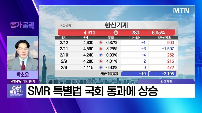 - SMR 특별법 국회 통과에 상승